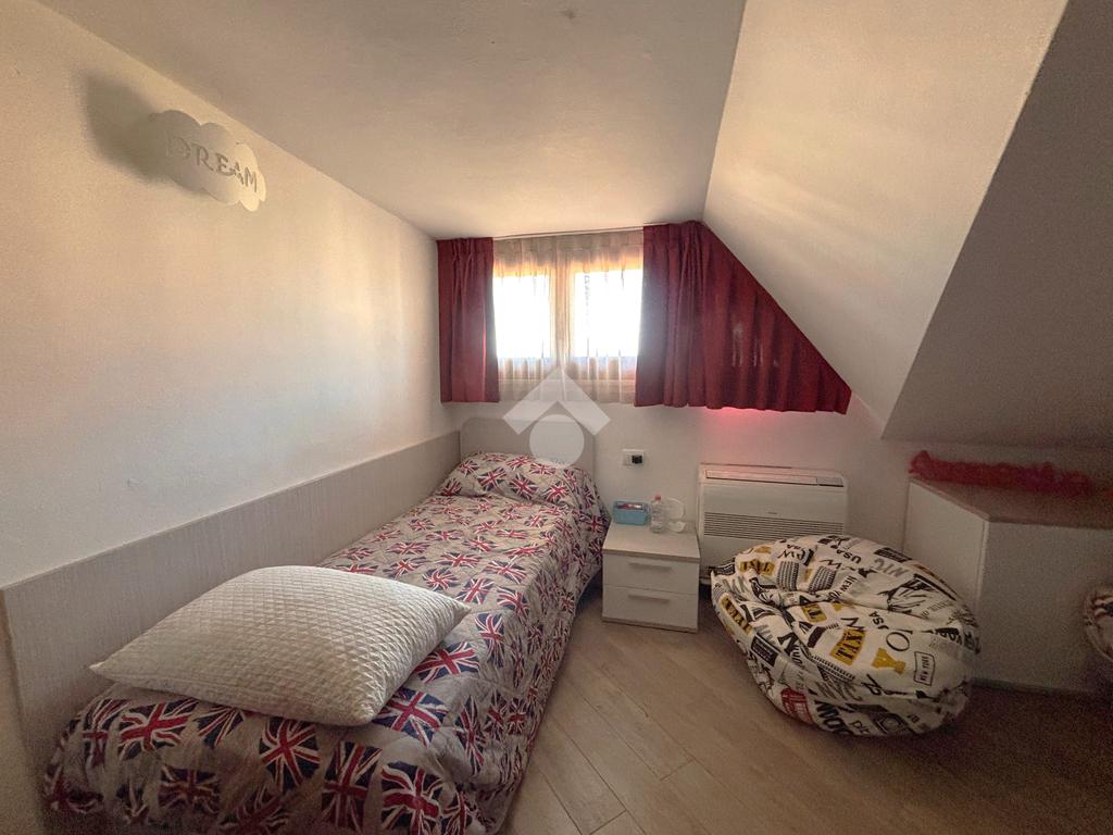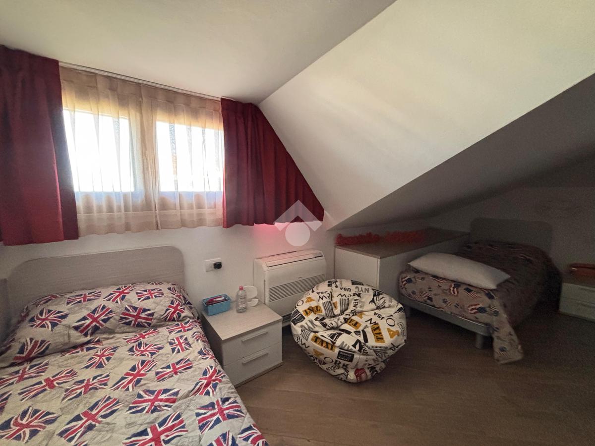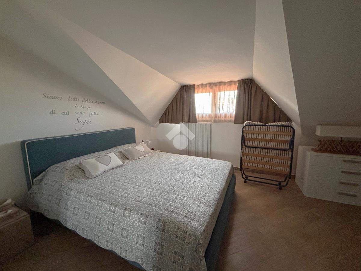 Una scala interna ci conduce alla zona notte nel secondo livello, composta da una camera matrimoniale finestrata mansardata, una cameretta finestrata mansardata e un secondo bagno con box doccia.