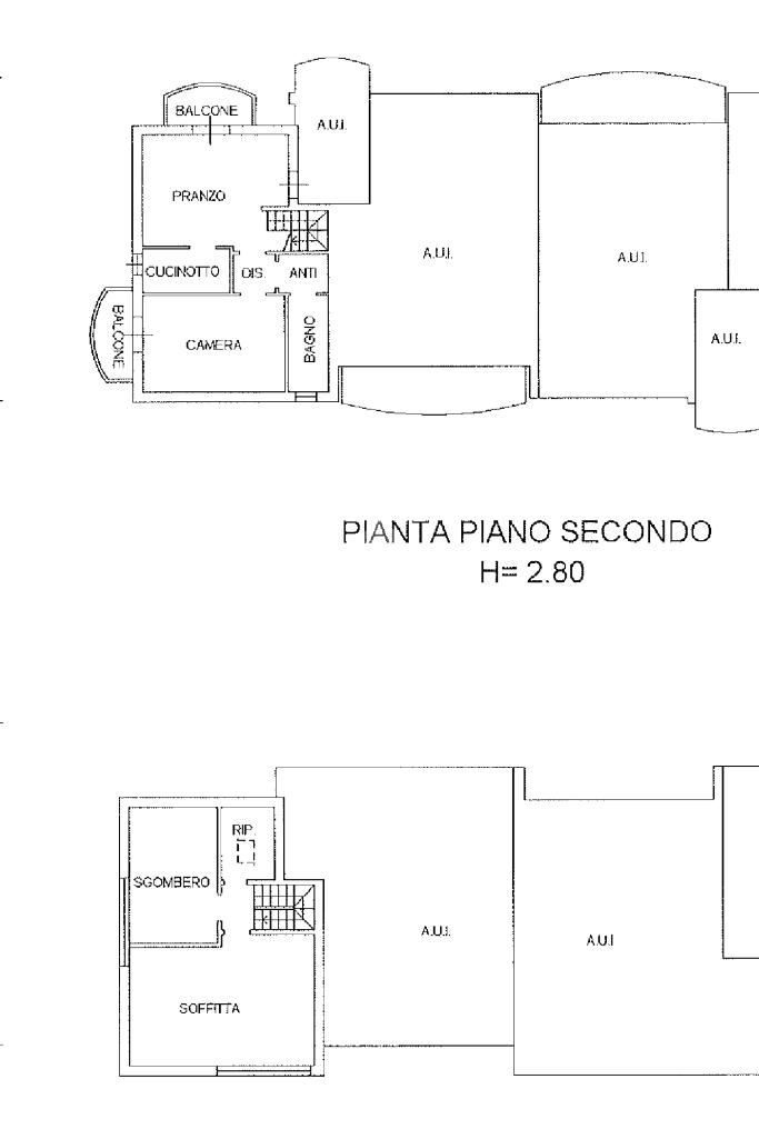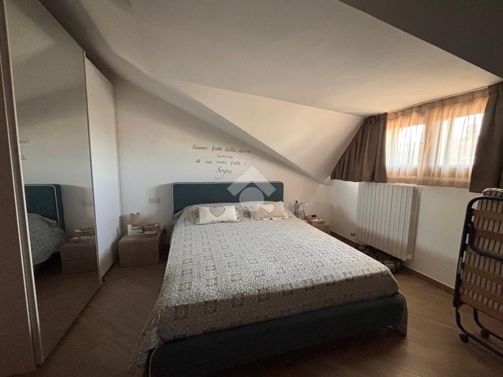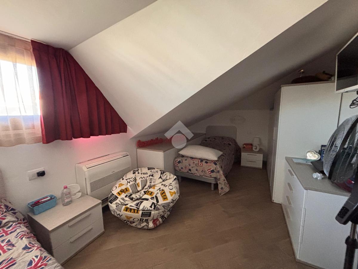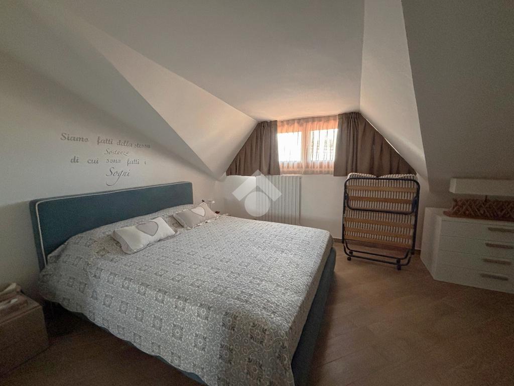 Una scala interna ci conduce alla zona notte nel secondo livello, composta da una camera matrimoniale finestrata mansardata, una cameretta finestrata mansardata e un secondo bagno con box doccia.