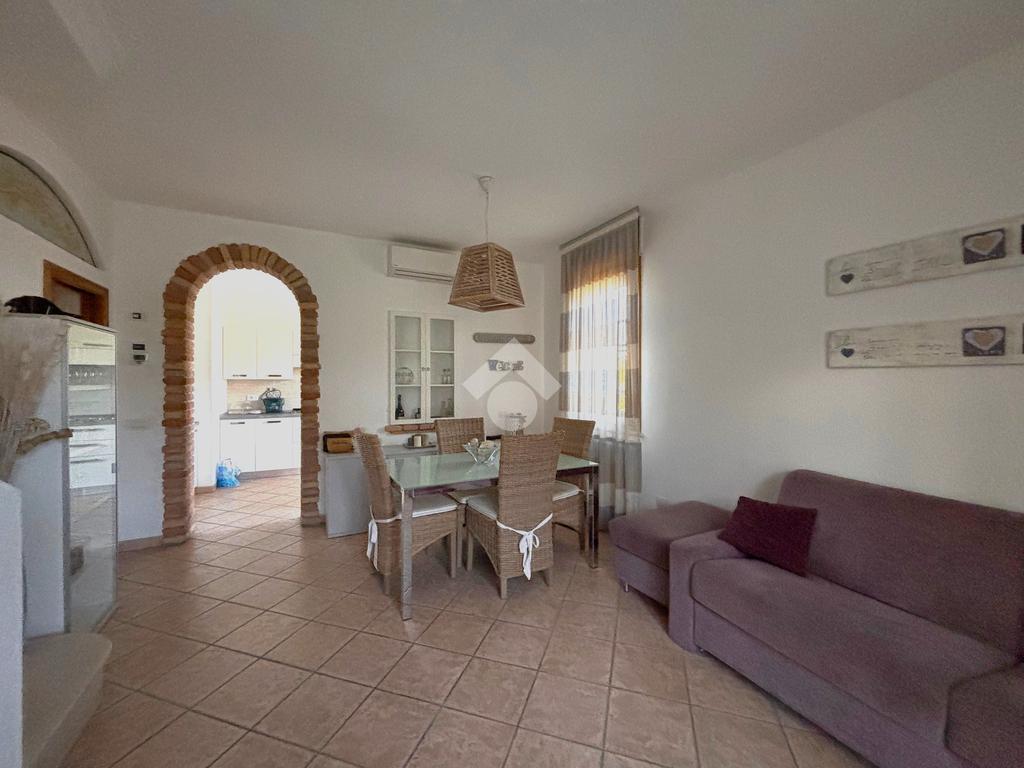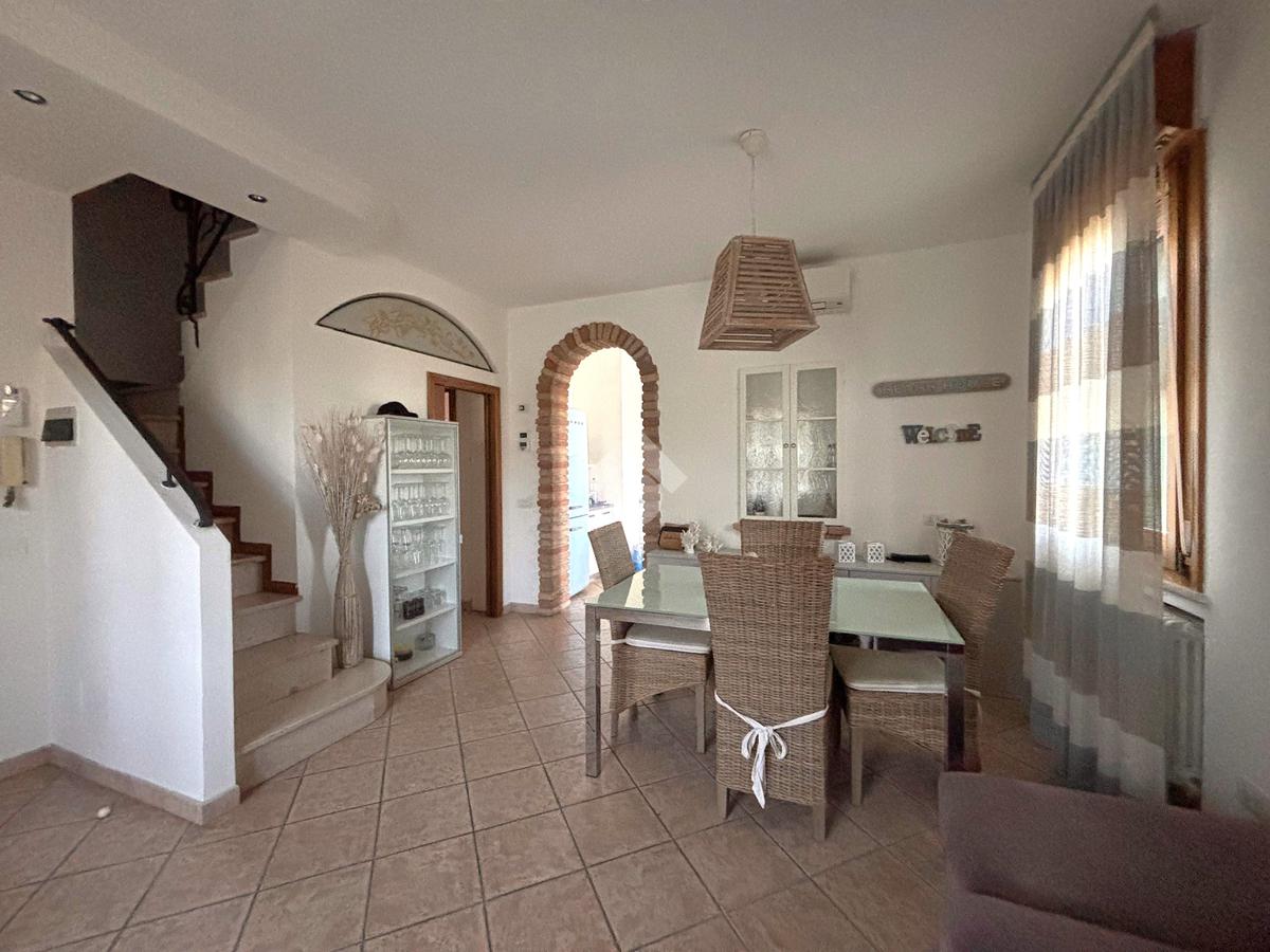 Internamente la soluzione presenta infissi in legno doppiovetro, pavimentazione in ceramica e in pvc finto legno, aria condizionata e caldaia a condensazione.