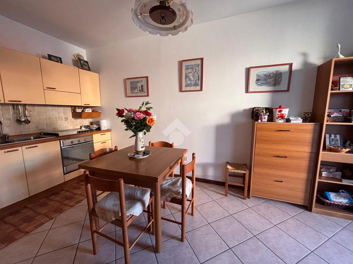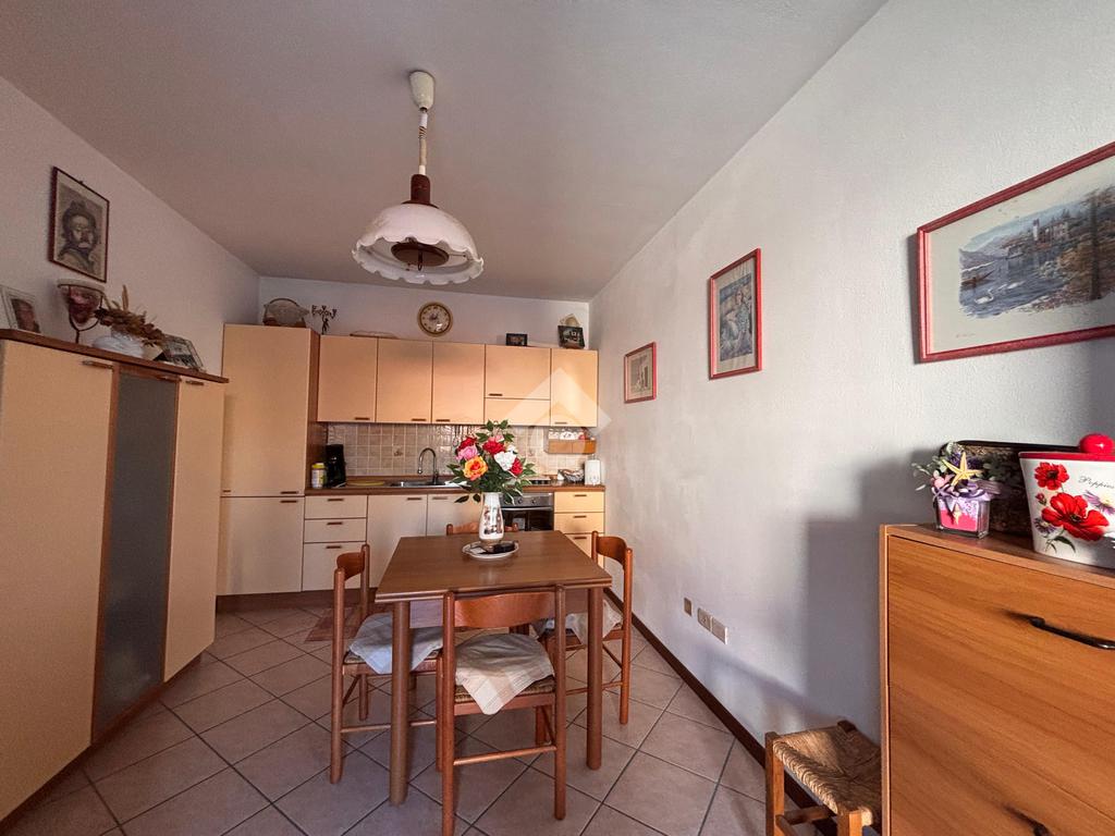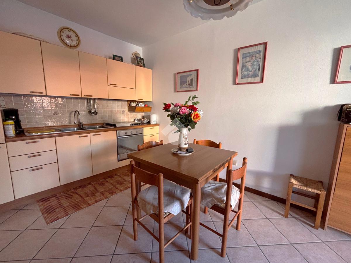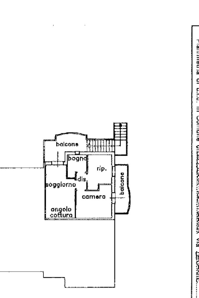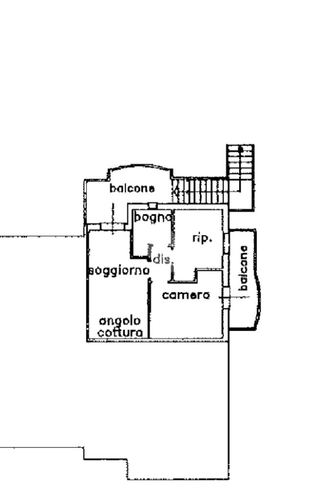 Dalla corte privata, una scala esterna ci conduce al balcone del primo piano, dove è situato l'ingresso dell' appartamento che si apre sulla zona giorno, composta da soggiorno con cucina a vista.