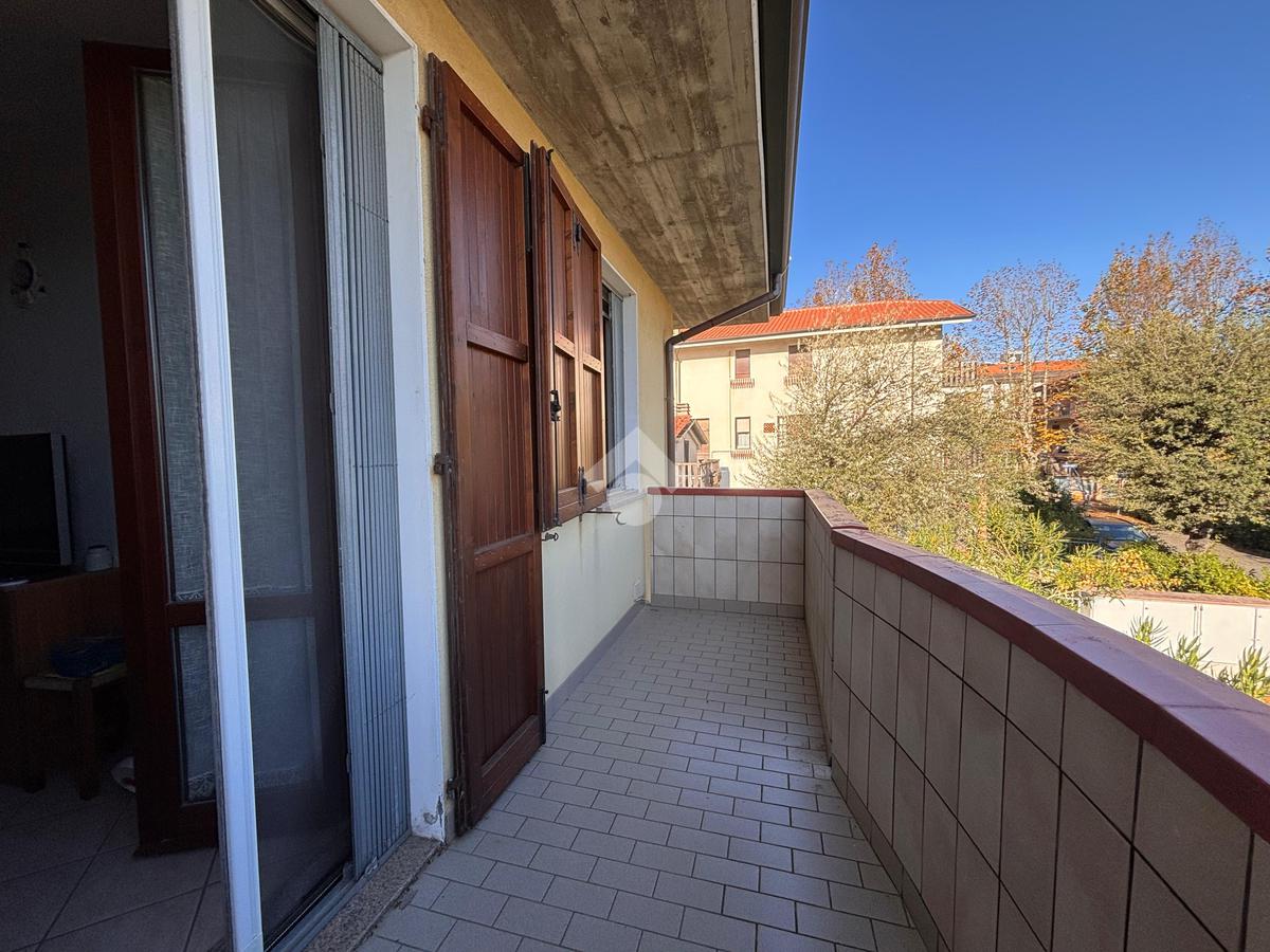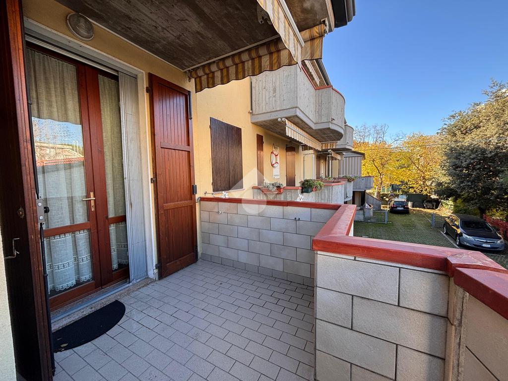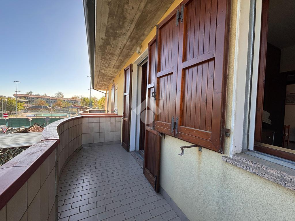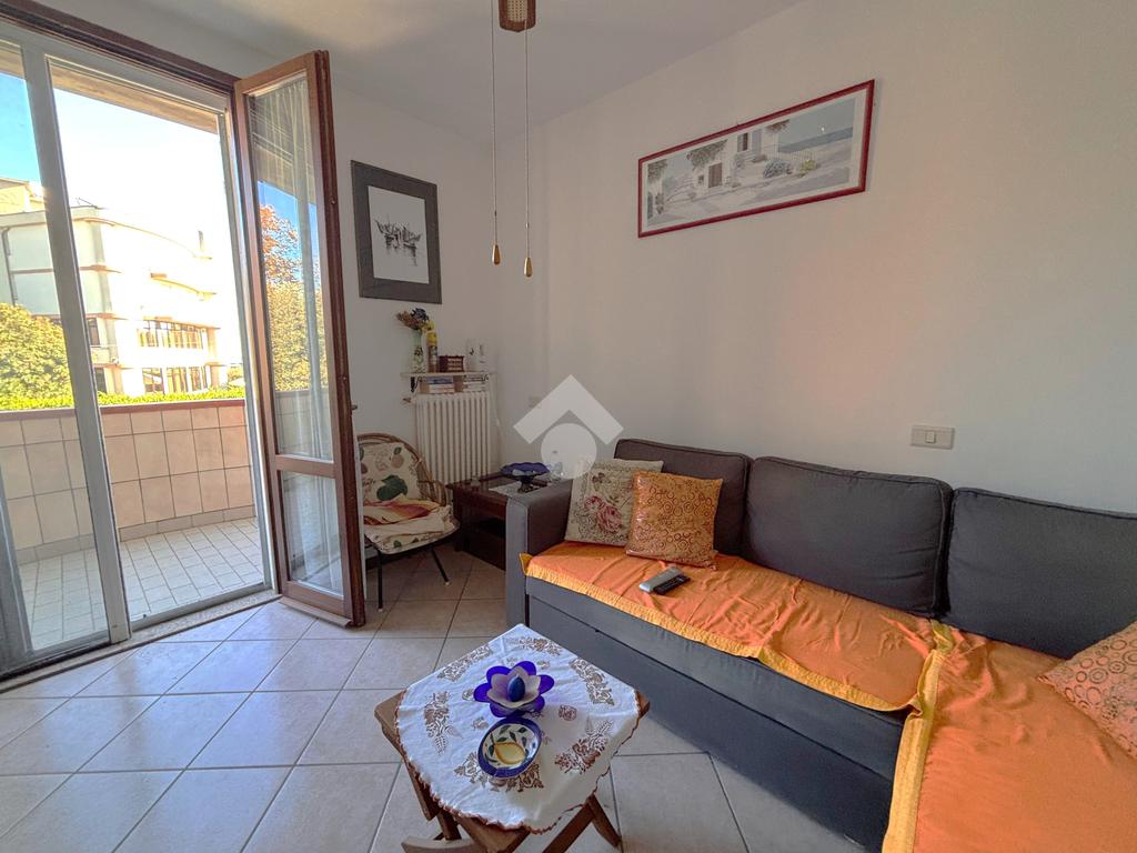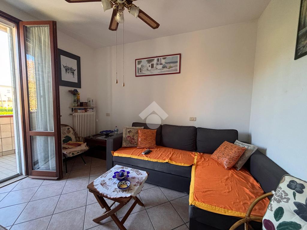 Dalla corte privata, una scala esterna ci conduce al balcone del primo piano, dove è situato l'ingresso dell' appartamento che si apre sulla zona giorno, composta da soggiorno con cucina a vista.