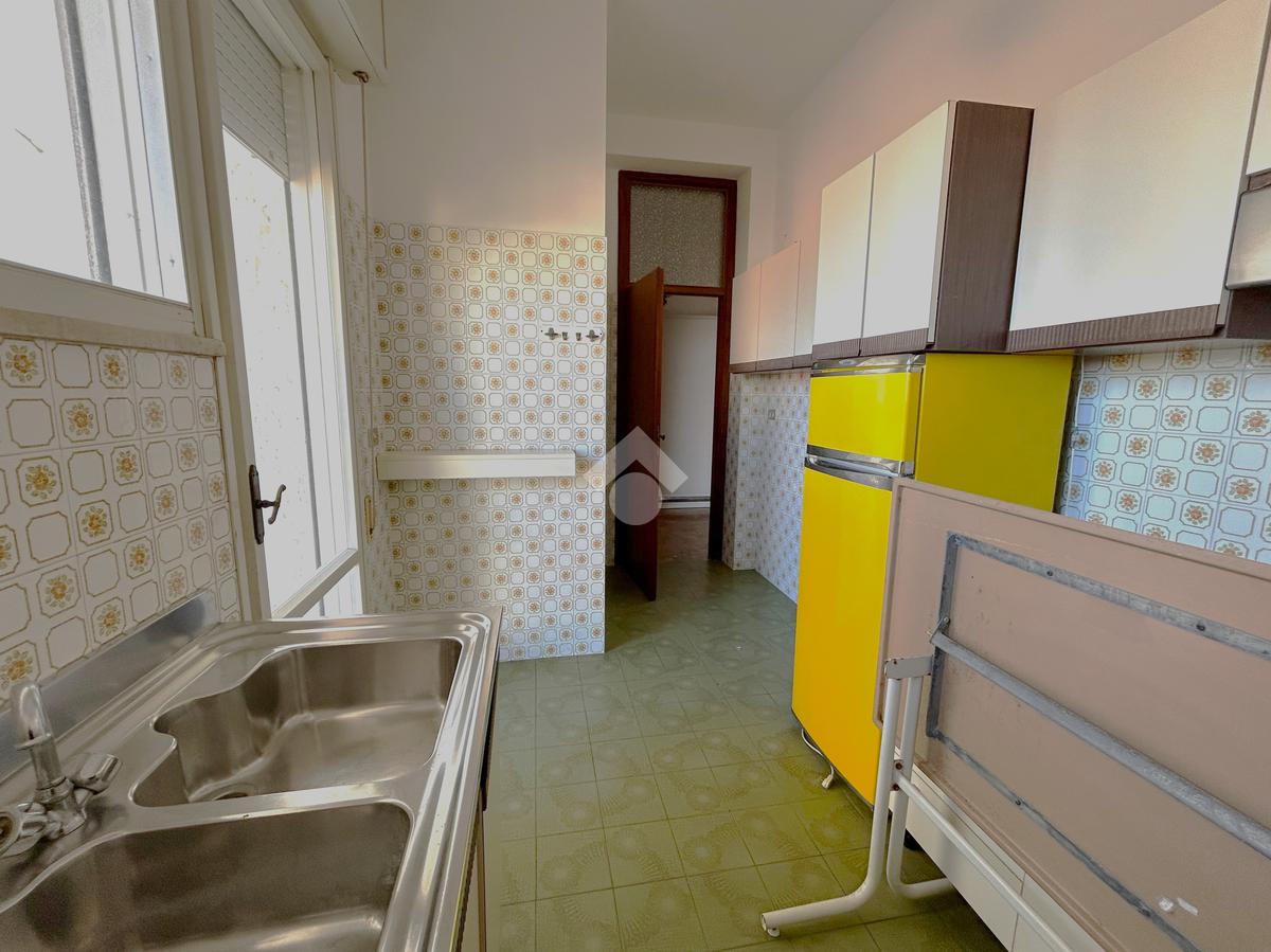 L ingresso si apre su un comodo disimpegno che ci conduce nei vani principali; la cucina abitabile servita da un balcone vista mare, un soggiorno servito da un secondo balcone, un bagno finestrato con vasca e una camera da letto matrimoniale servita da balcone.