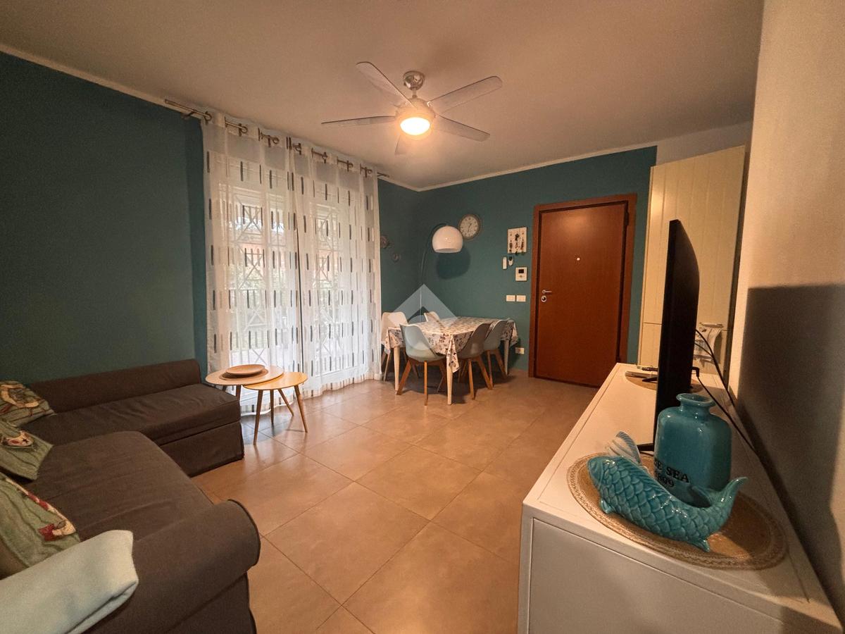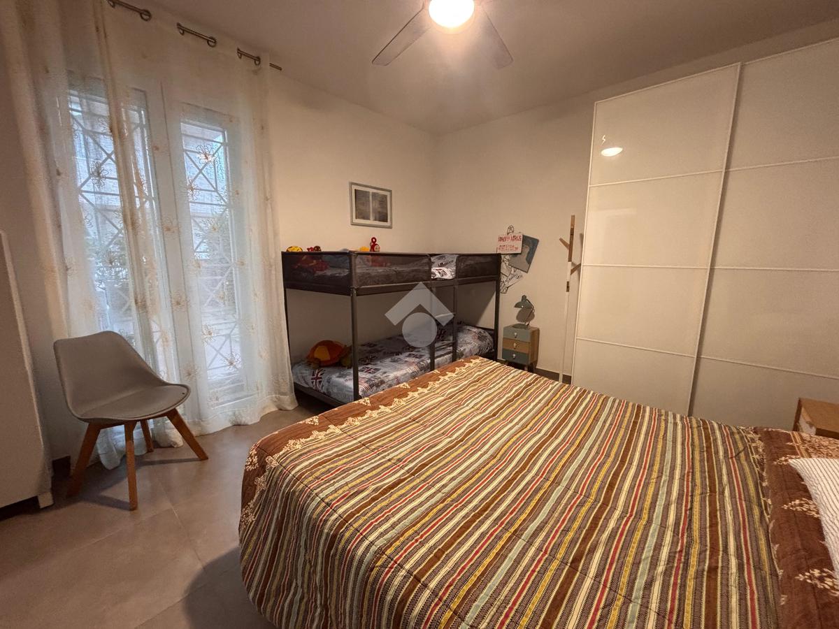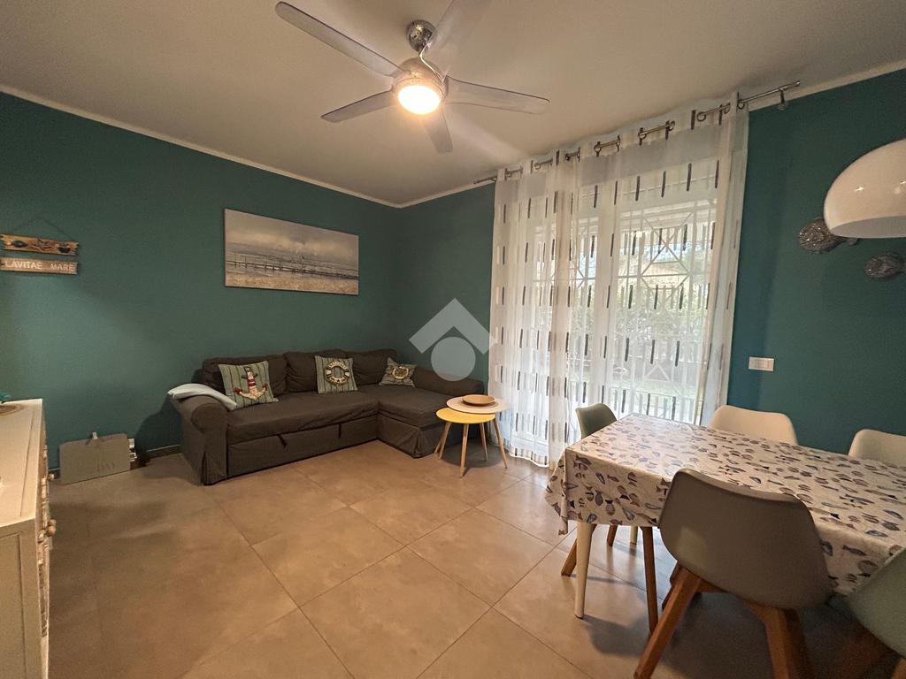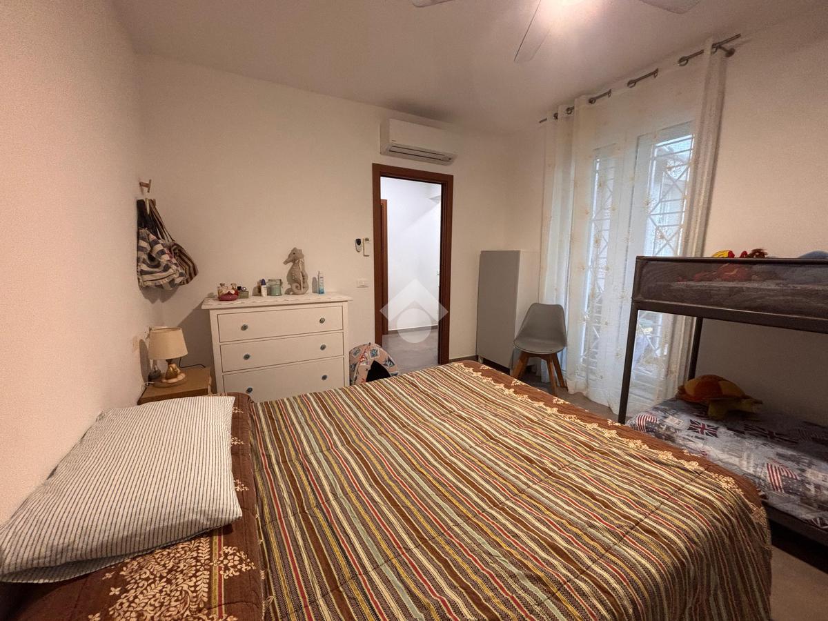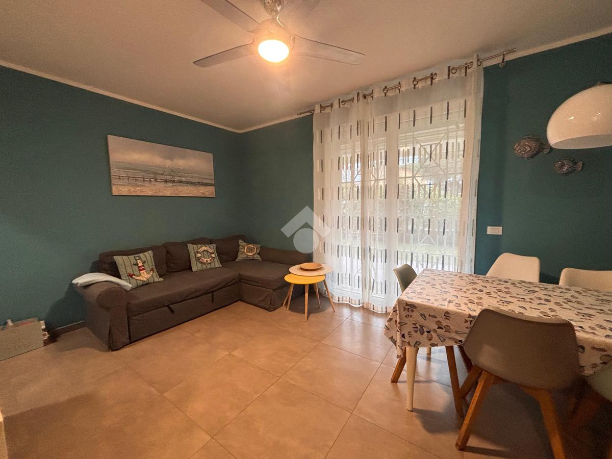 In una zona tranquilla, residenziale e a pochi passi dal mare, appartamento di recente costruzione al piano terra con ingresso indipendente e corte privata.