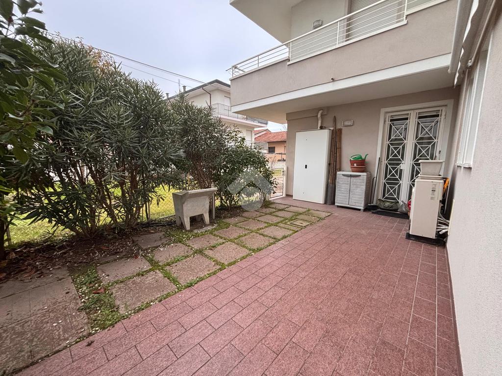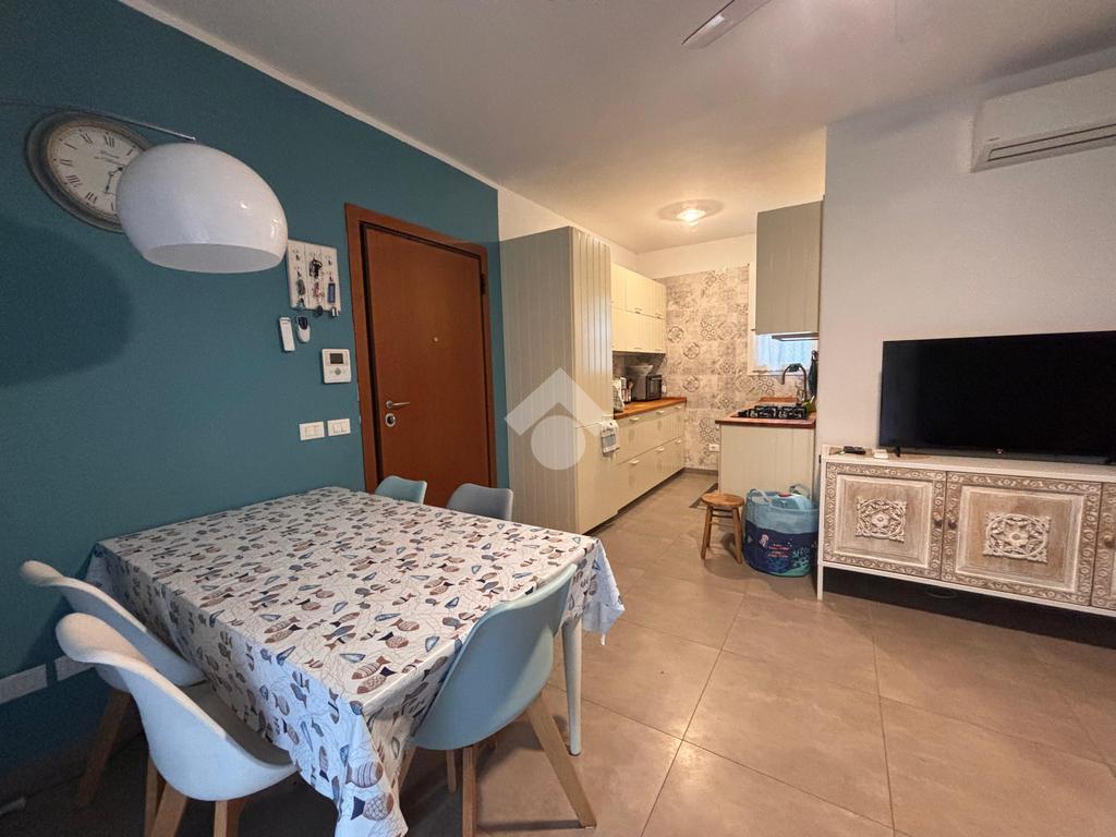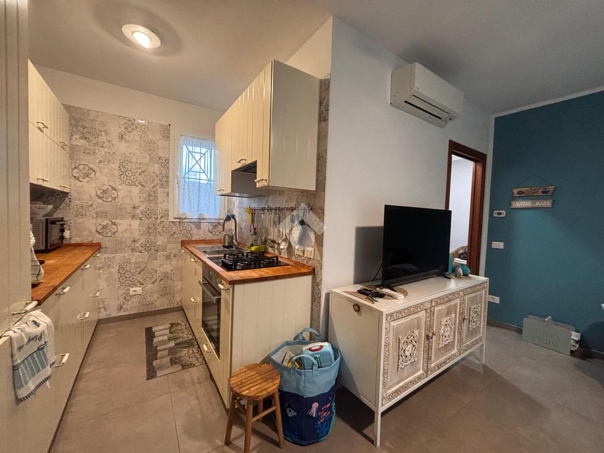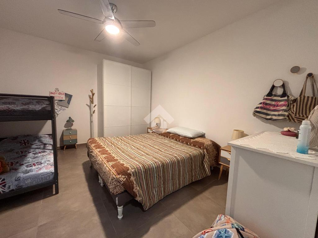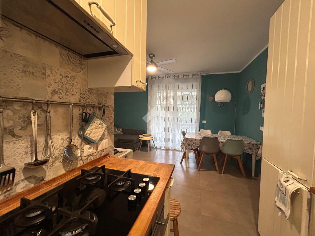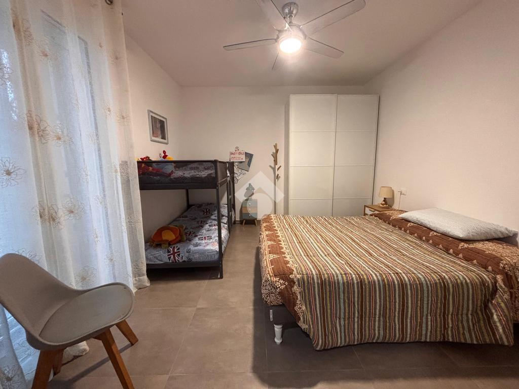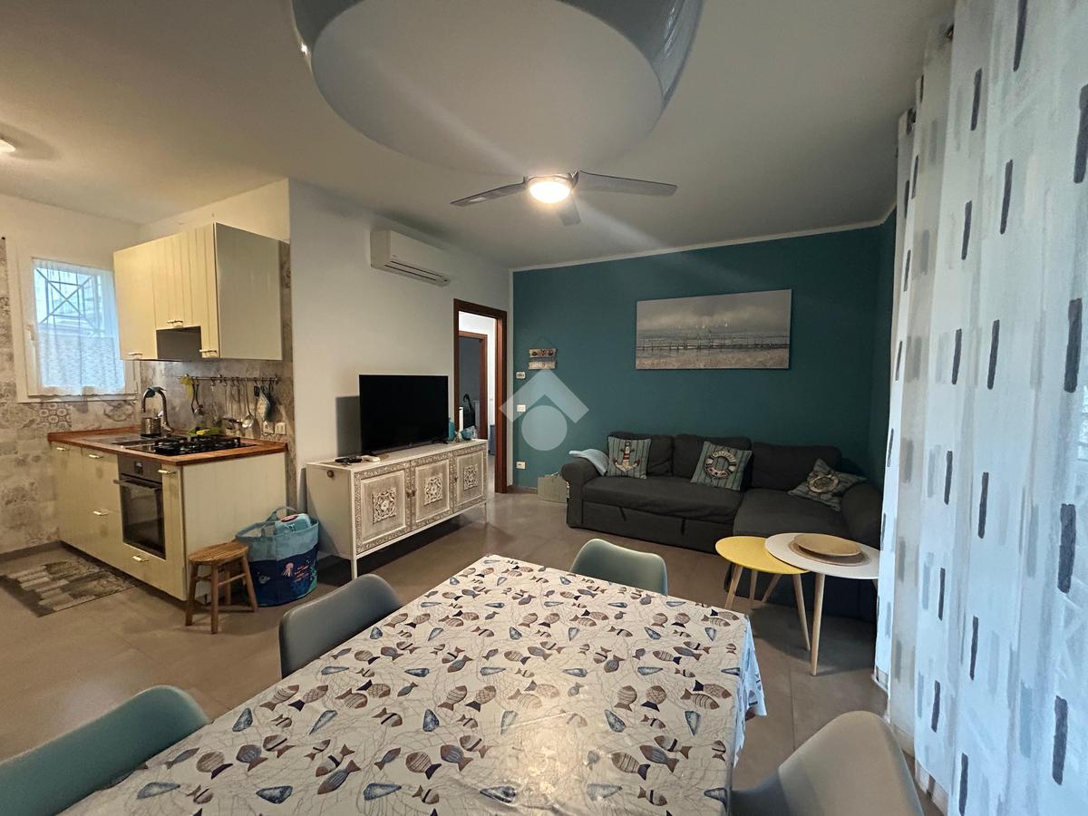 In una zona tranquilla, residenziale e a pochi passi dal mare, appartamento di recente costruzione al piano terra con ingresso indipendente e corte privata.