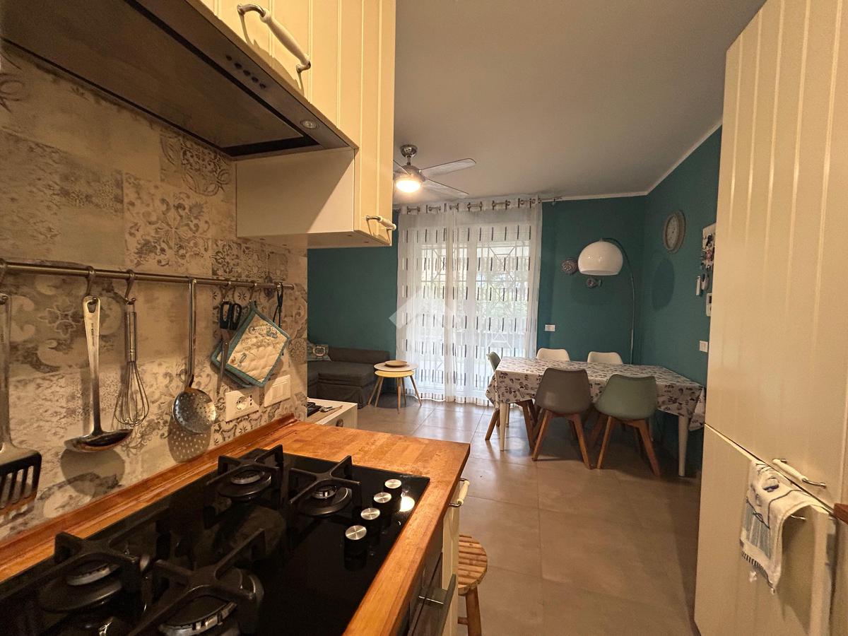 L'immobile offre spazi ben distribuiti e moderni. L ingresso dell appartamento si apre sulla zona giorno, composta da un luminoso soggiorno con angolo cottura, dotato di porta finestra con affaccio sul giardino.