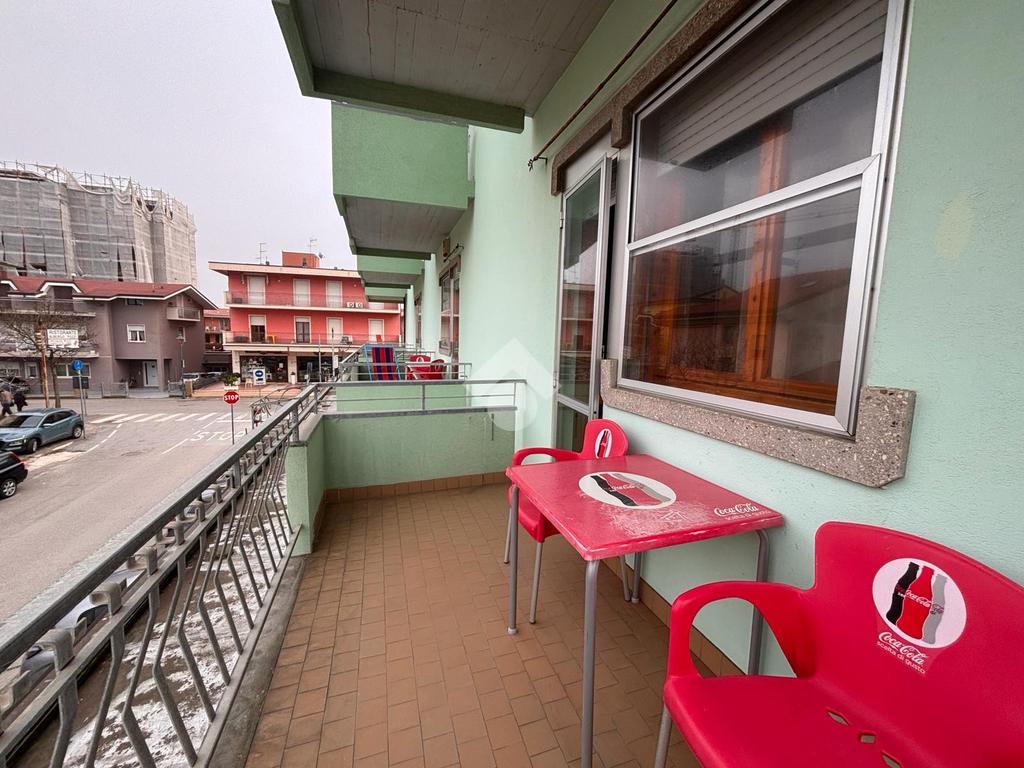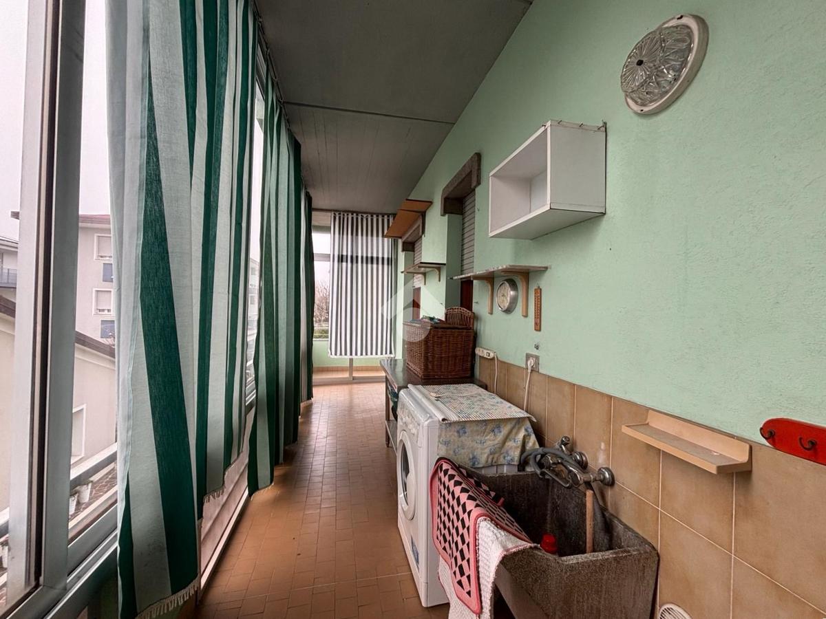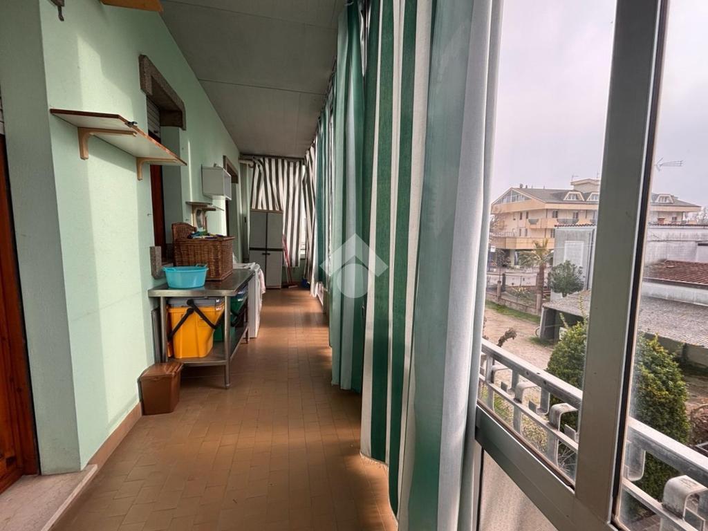 Dall ingresso abbiamo accesso ad un comodo disimpegno che ci conduce nei vari vani della casa; un luminso soggiorno servito da balcone, una cucina separata abitable servita da un balcone verandato angolare, una camera da letto matrimoniale di circa 16 mq. servita anch essa da un balcone angolare, una camera doppia che si affaccia sul balcone verandato e un bagno finestrato con doccia a vista.
